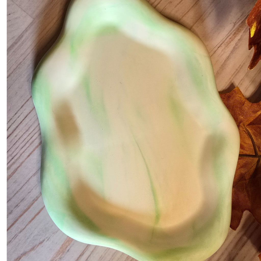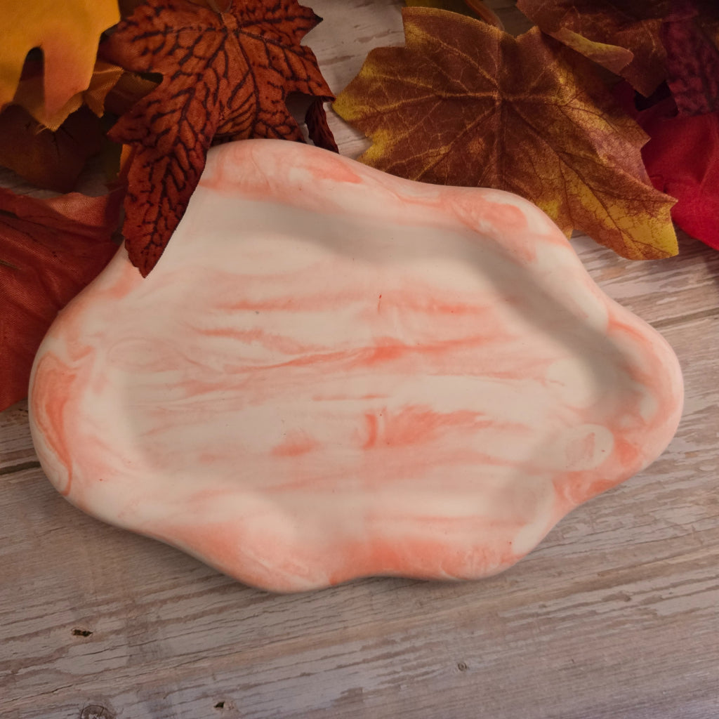 Schlicht und zugleich besonders: Der handgefertigte Teller in sanft wellenförmigem Design ist ein vielseitiges Schmuckstück für dein Zuhause. Ob als Ablage für Schlüssel, Schmuck oder kleine Kostbarkeiten – oder als dekorativer Untersetzer für Kerzen und Vasen – sie passt zu jeder Jahreszeit und jedem Einrichtungsstil. Die sanften Marmorierungen machen jedes Stück zu einem Unikat, das Natürlichkeit und Eleganz verbindet.