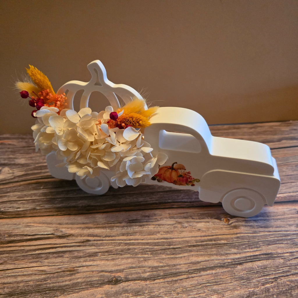Mit seinen zarten Farben und dem nostalgischen Design passt der Truck perfekt zu deiner Herbstdeko und sorgt für eine gemütliche, warme Atmosphäre.