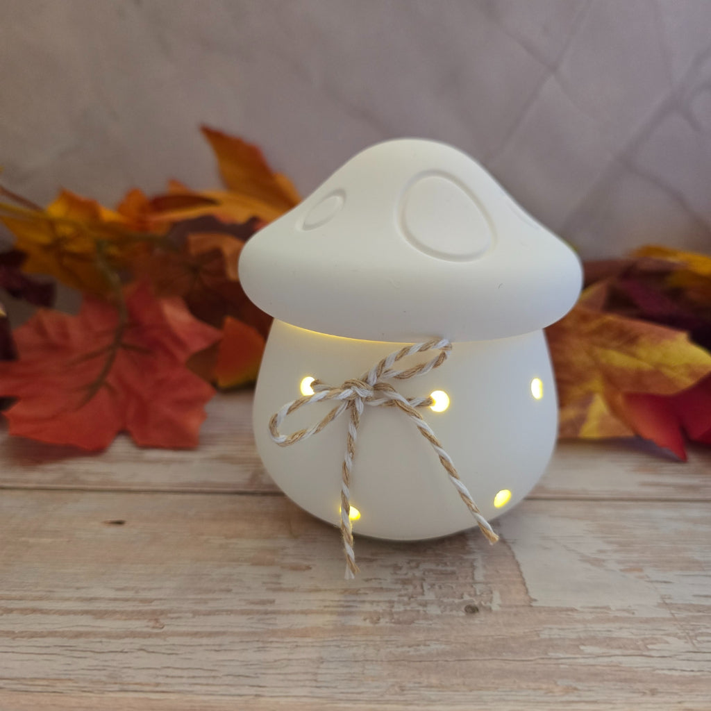 Der Herbst zeigt sich von seiner märchenhaften Seite – und dieser handgearbeitete Pilz bringt genau dieses Gefühl in dein Zuhause. Mit kleinen Lichtöffnungen versehen, zaubert er ein warmes Schimmern und erinnert an Spaziergänge durch bunte Wälder.
