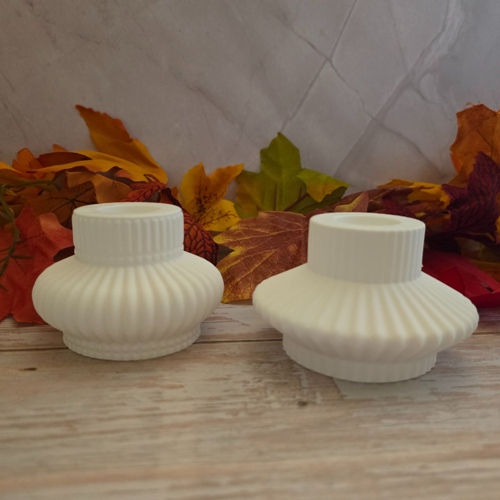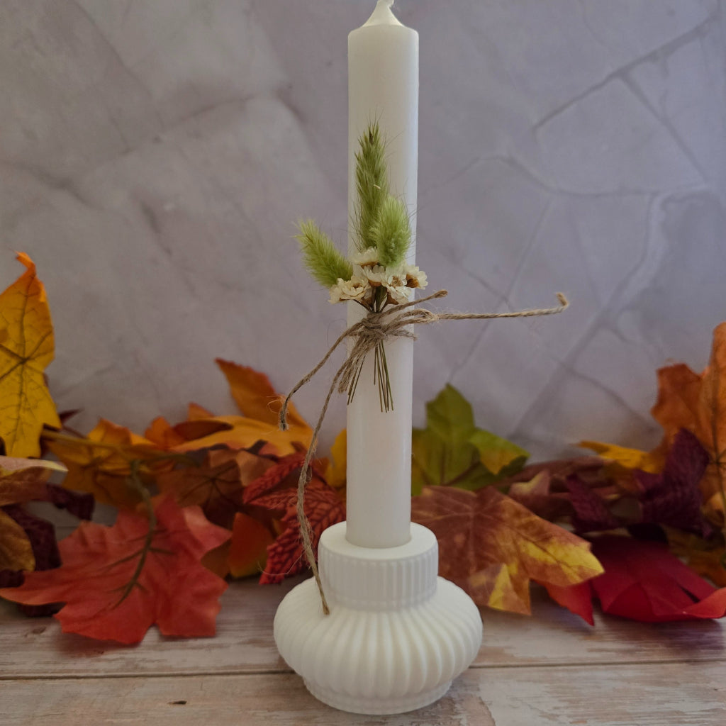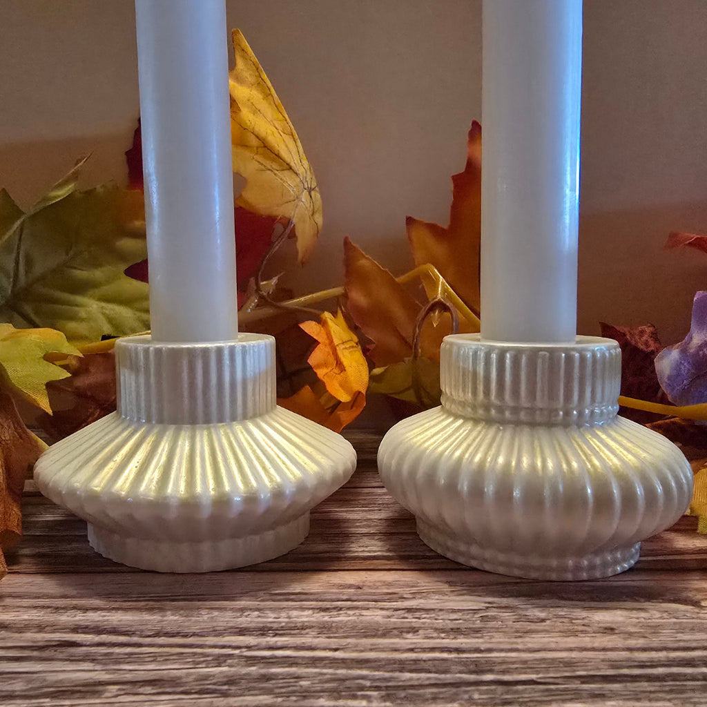 Diese Stabkerzenhalter im Rillendesign vereinen schlichte Eleganz mit handgefertigter Individualität. Aus hochwertiger Reliefgießmasse gegossen, bringen sie zeitlose Schönheit in dein Zuhause – stabil, stilvoll und vielseitig kombinierbar.