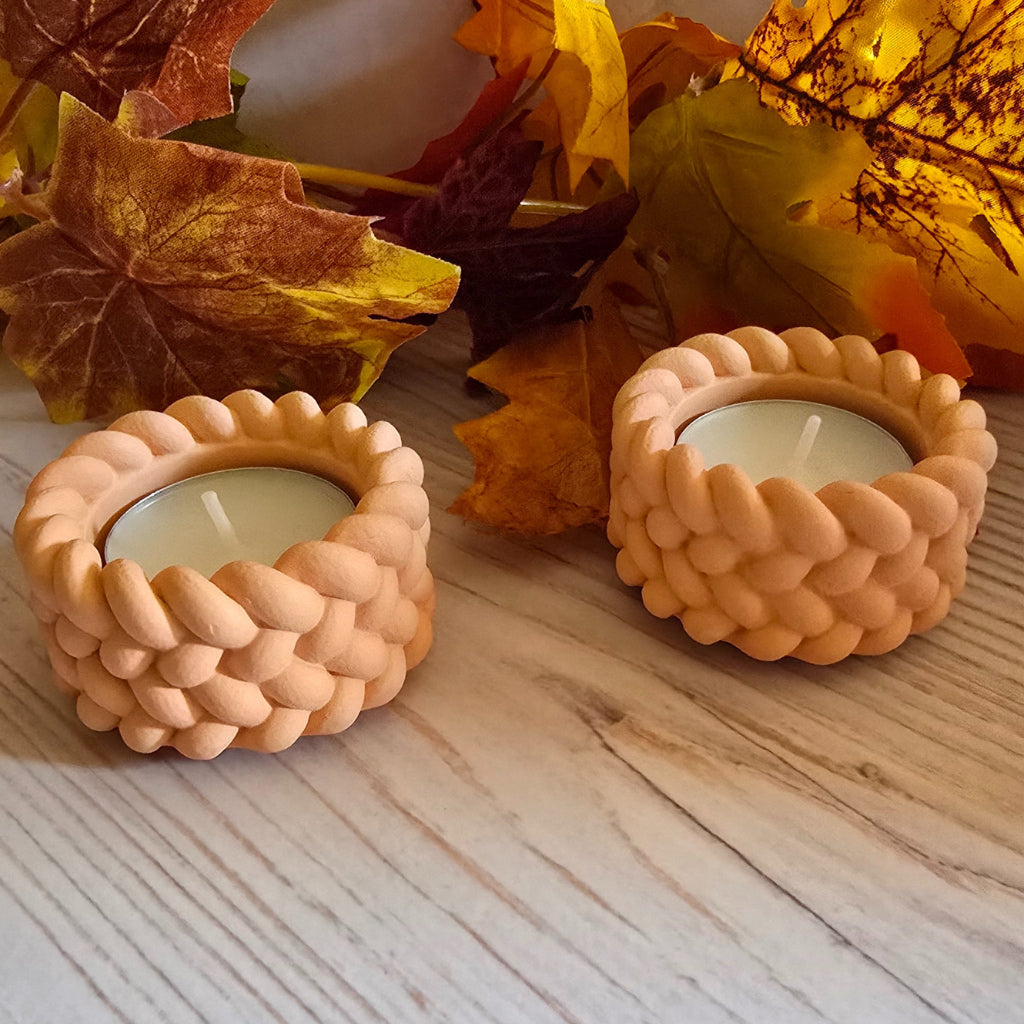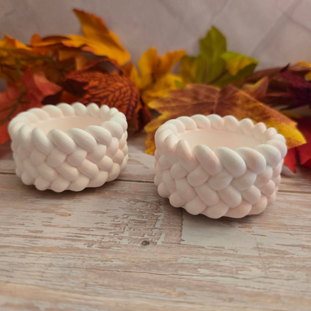 Gemütlichkeit zum Hinstellen: Meine handgefertigten Teelichthalter in Strickoptik bringen Wärme und Behaglichkeit in dein Zuhause – nicht nur im Herbst, sondern das ganze Jahr über. Die detailreiche Struktur erinnert an liebevoll gestrickte Maschen und macht jedes Stück zu einem besonderen Blickfang. Ob auf dem gedeckten Tisch, im Regal oder als kleines Geschenk – die Teelichthalter schaffen mit sanftem Kerzenlicht eine stimmungsvolle Atmosphäre.